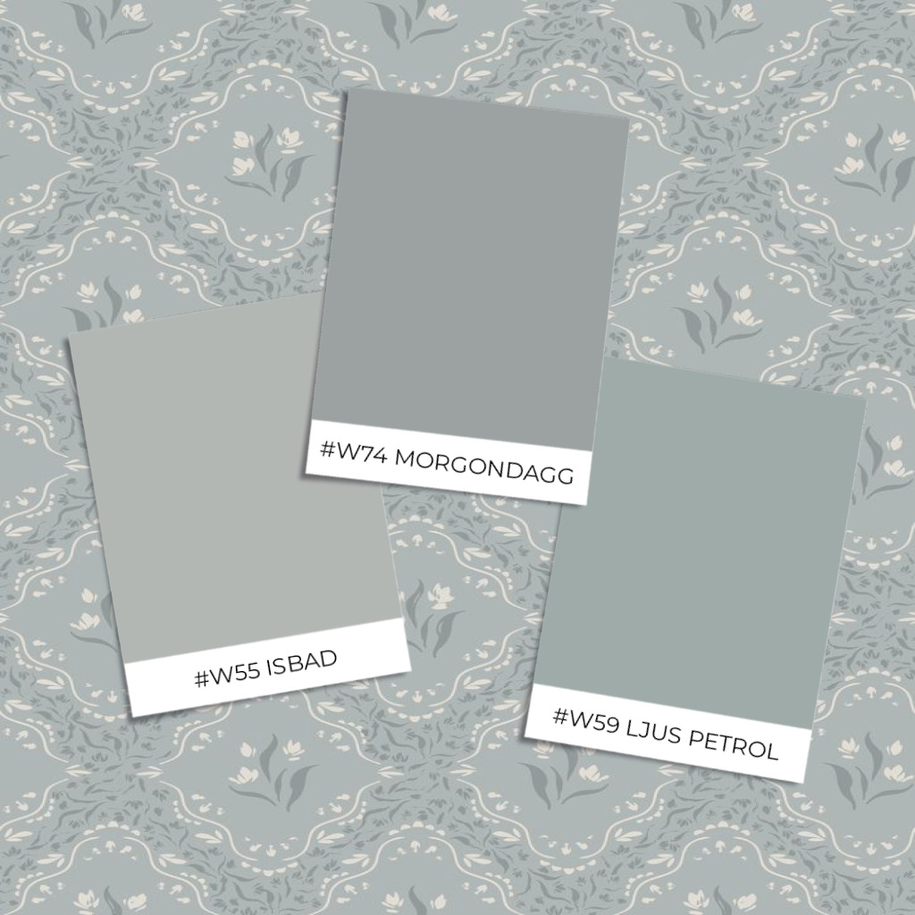 Wallpassions svanenmärkta målarfärg blandas i Sverige och istället för provburkar målas den alltså upp på självhäftande pappersprover när du lägger en beställning. Du slipper provmåla själv och kan dessutom flytta runt färgprovet för att se hur kulören ser ut i olika väderstreck – och du bidrar samtidigt till mindre klimatpåverkan än om du provmålar själv.